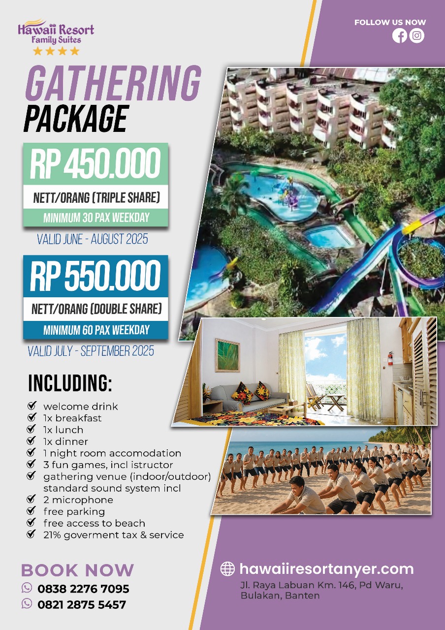 Conduct your next corporate meetings, group retreats and Family Gathering in the inspiring Anyer Carita, We offer the perfect setting for such events and we are happy to plan your function to the last detail.