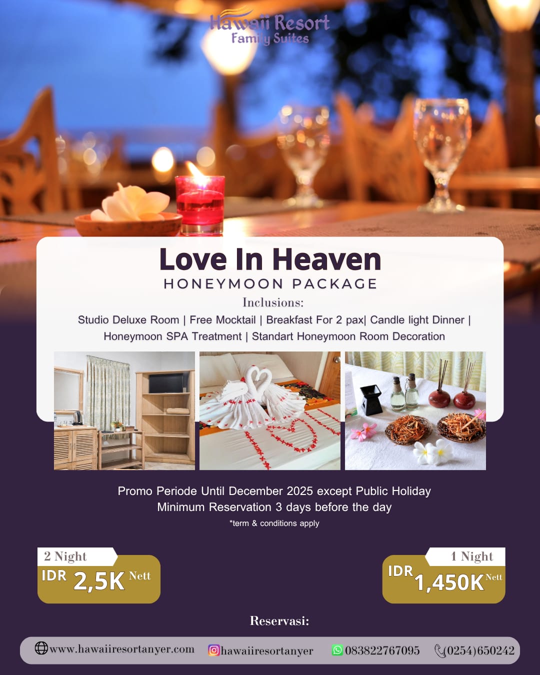 We offers a beautiful views of the beach, sea and Mount Krakatau. Provide a pleasant holiday experience with your family. Don't wait any longer, Booking now at our resort. .... Aloha.